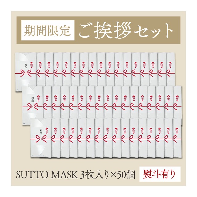 【期間限定】ご挨拶セット SUTTO MASK 3枚入り 50個セット(熨斗有り)