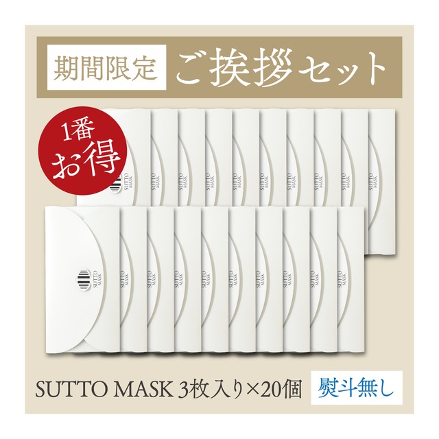 【期間限定】ご挨拶セット SUTTO MASK 3枚入り 20個セット(熨斗なし)