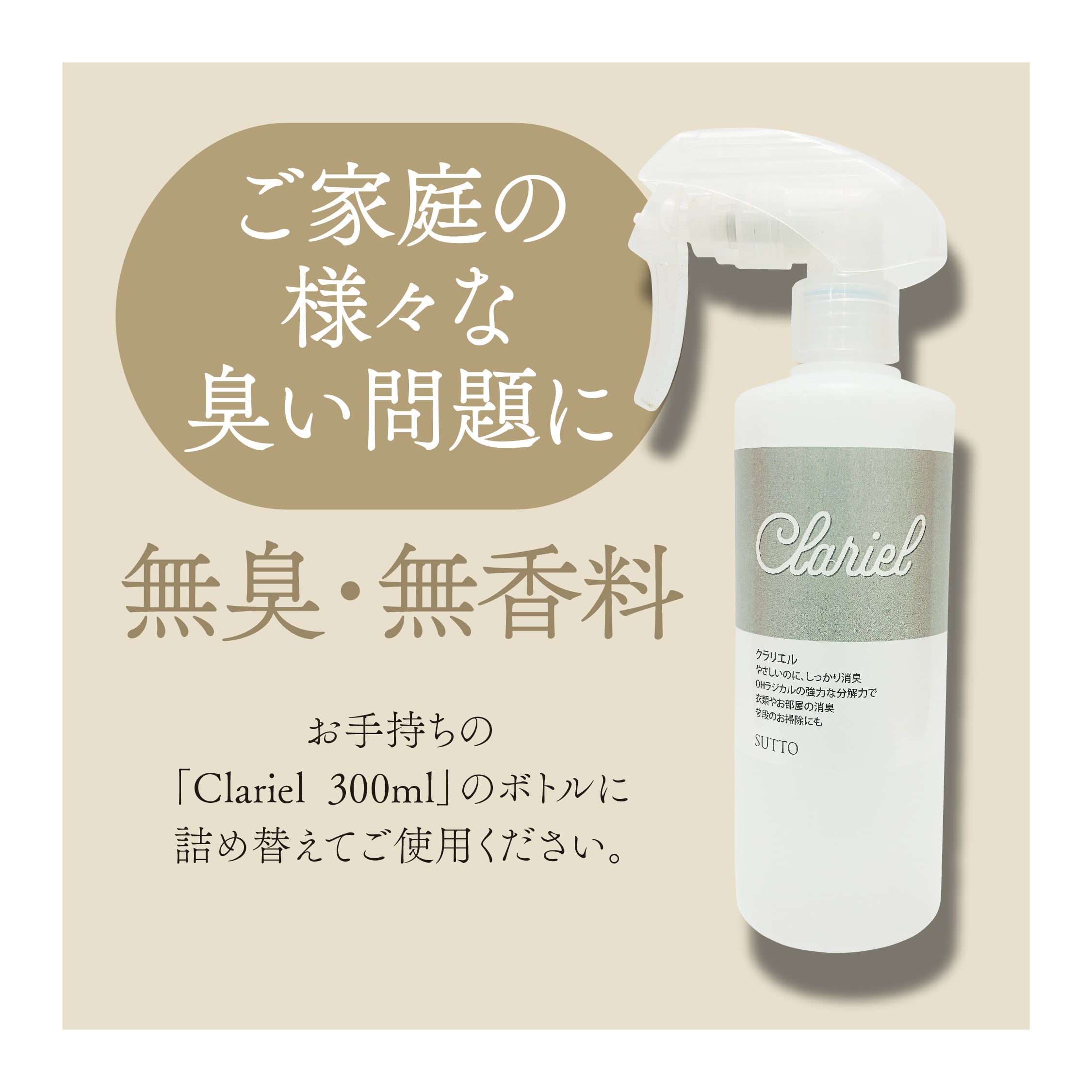【悪臭の元を強力分解消臭】 Clariel 300mlボトル用レフィル2包セット