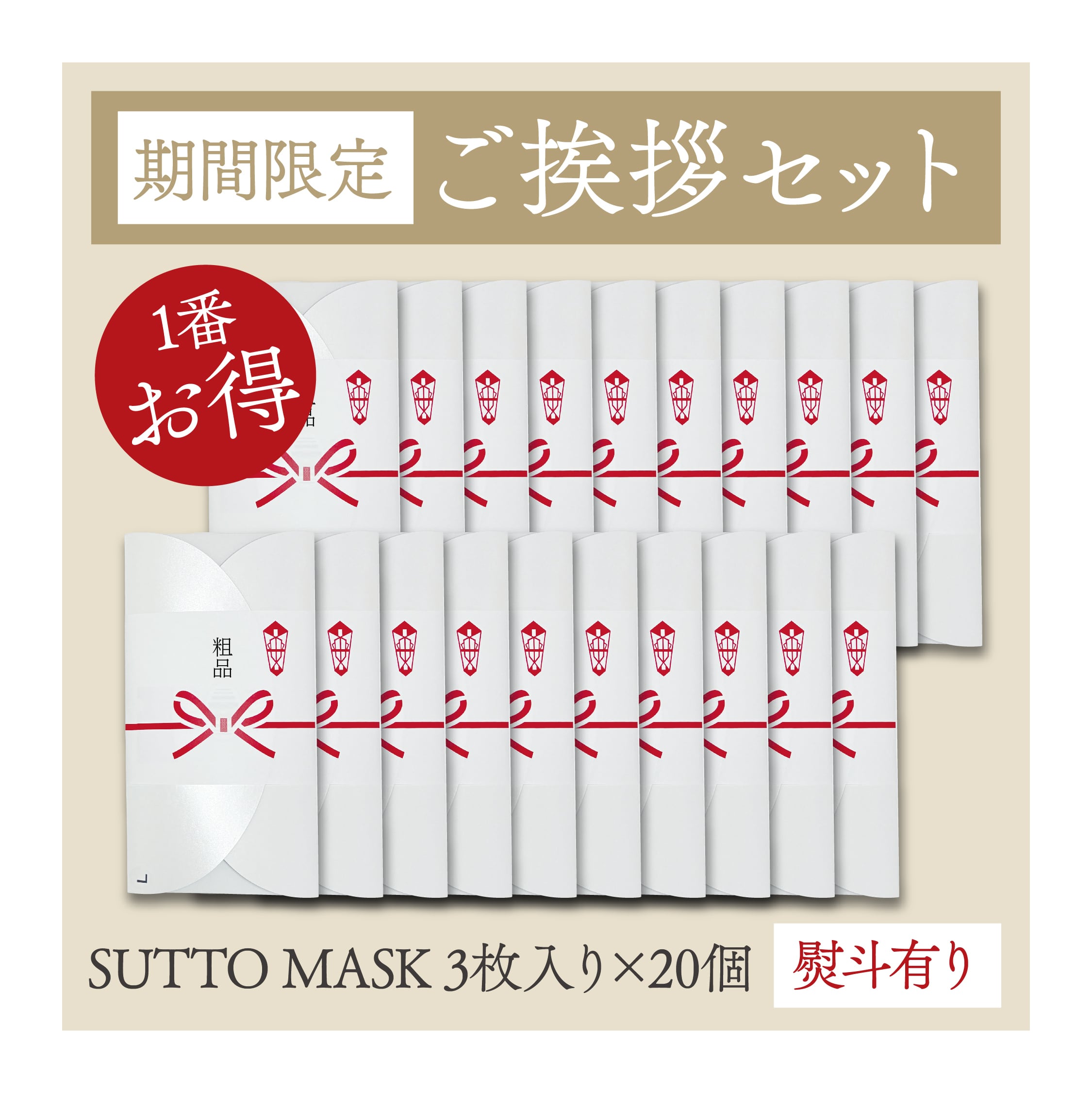 【期間限定】ご挨拶セット SUTTO MASK 3枚入り 20個セット(熨斗有り)